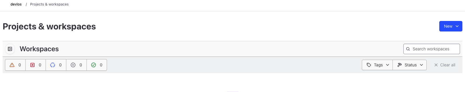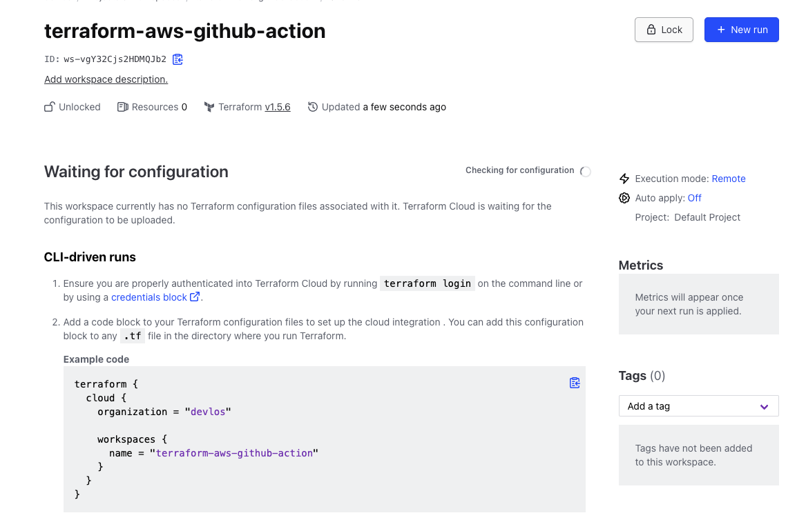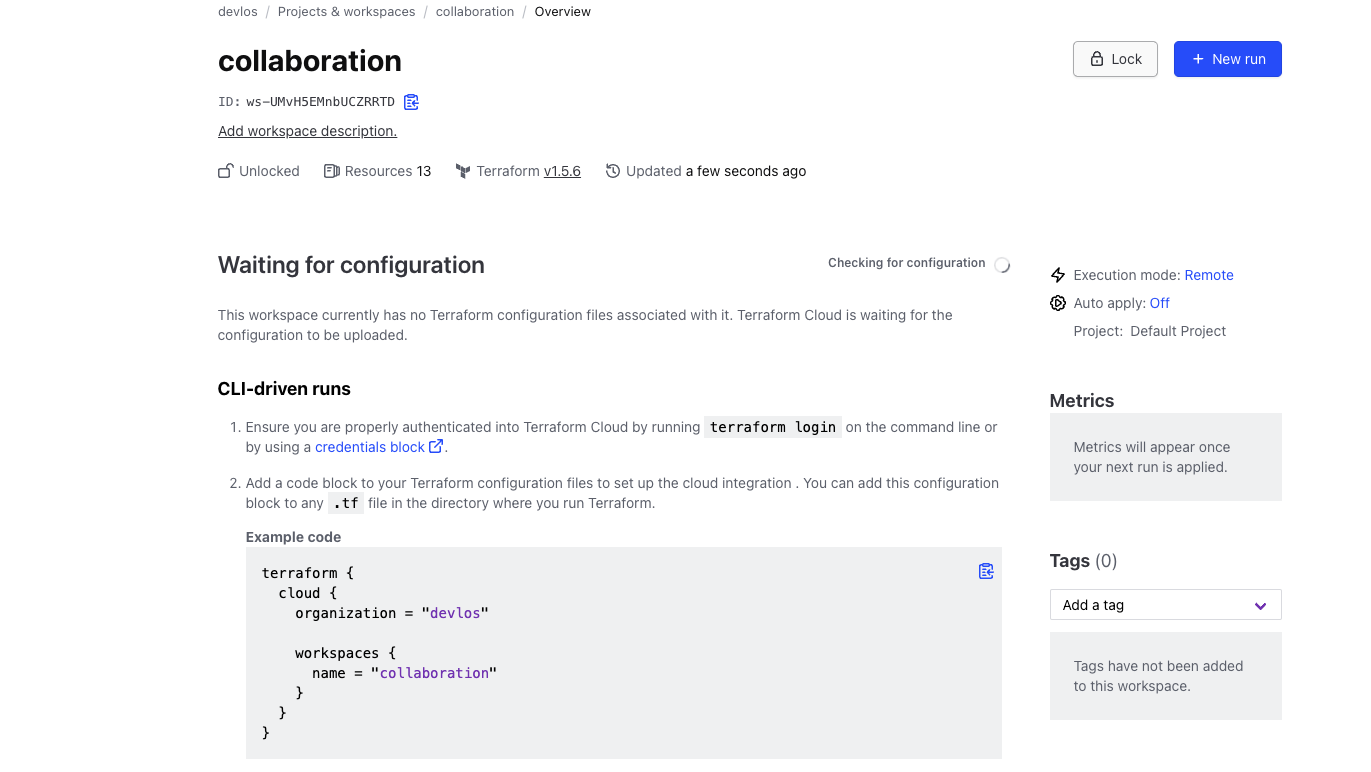 현재는 TFC 워크 스페이스에 아무것도 없는 상황입니다.