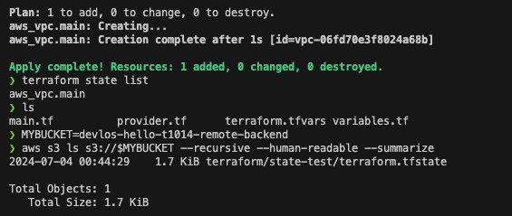 # AWS S3 버킷 내에 tfstate 파일 확인