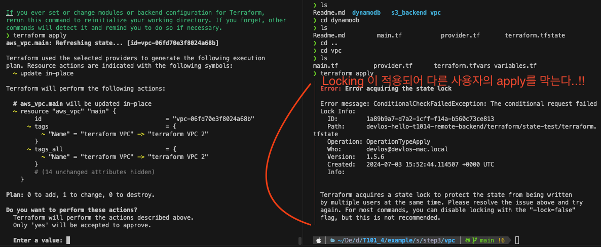 5. VPC tag 수정 후 apply 와서 Locking 확인