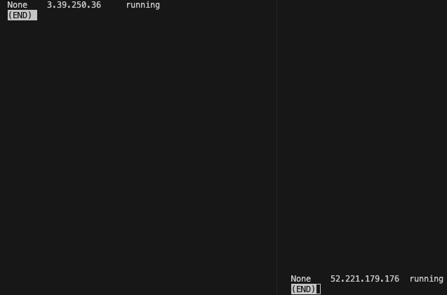 while true; do aws ec2 describe-instances --query "Reservations[*].Instances[*].{PublicIPAdd:PublicIpAddress,InstanceName:Tags[?Key=='Name']|[0].Value,Status:State.Name}" --filters Name=instance-state-name,Values=running --output text ; echo "------------------------------" ; sleep 1; done