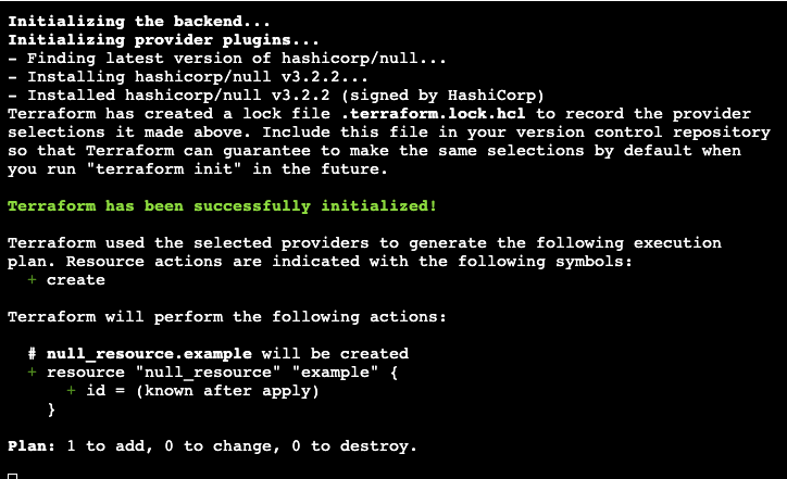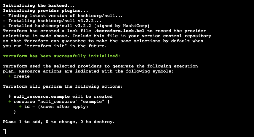 echo 'resource "null_resource" "example" {}' > main.tf