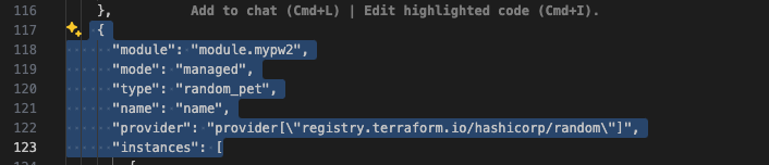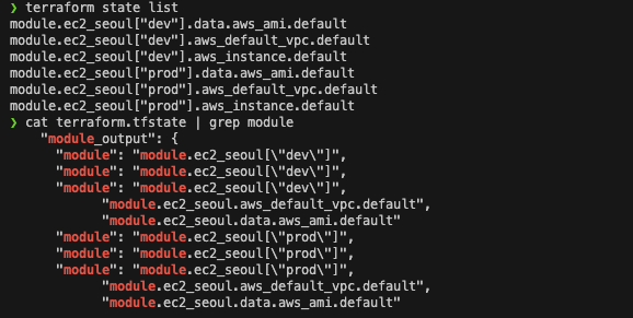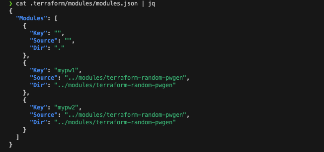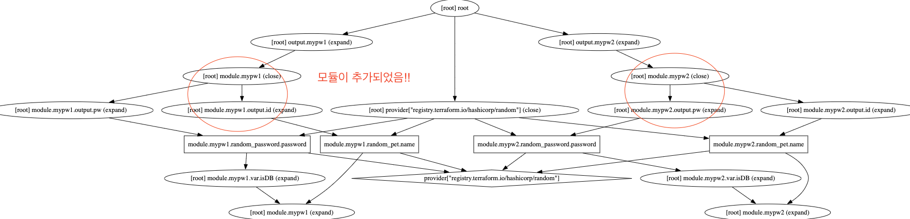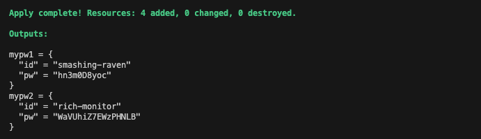 terraform.tfstate를 살펴보면 resources 부분에 mypw1, mypw2 모듈이 추가되었음을 확인할 수 있습니다.