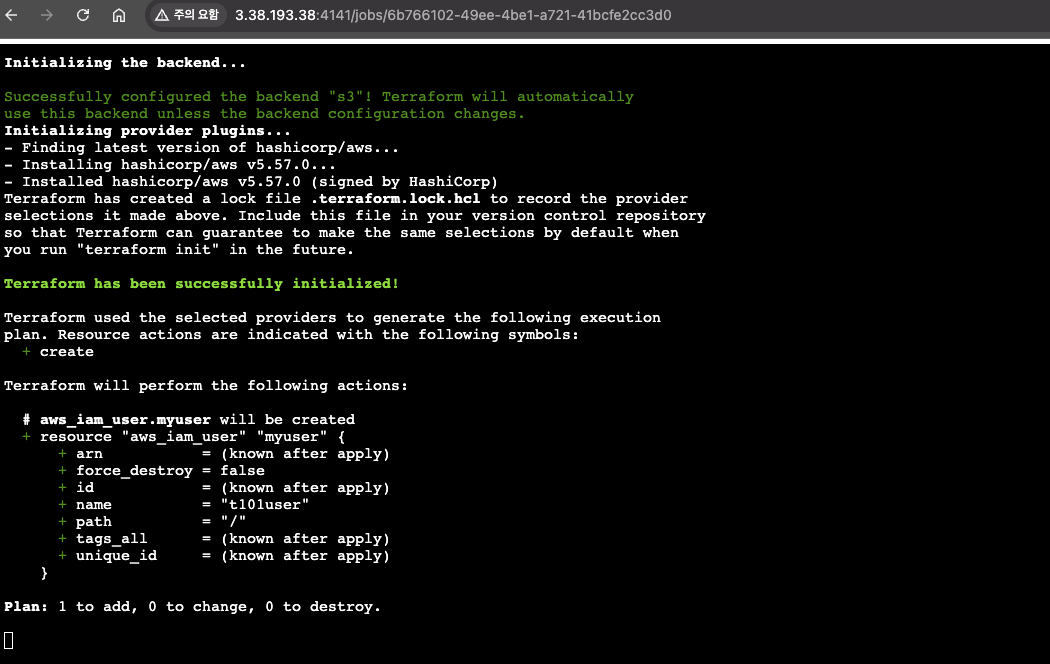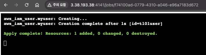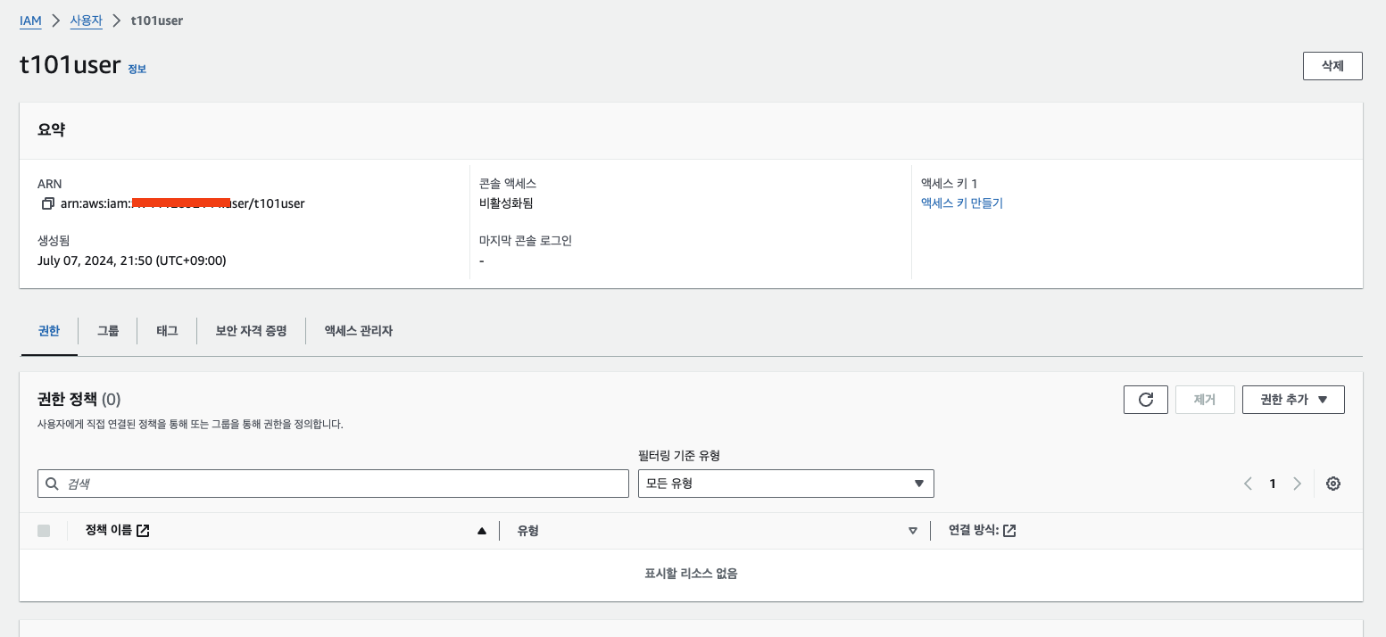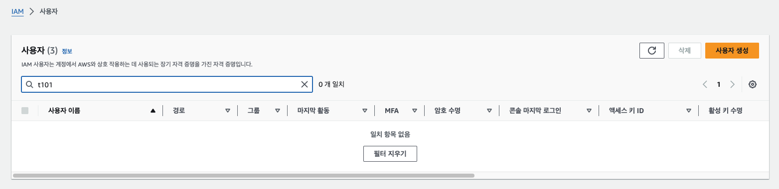 실제 aws 콘솔에 들어가 보면 유저가 생성된 것을 확인할 수 있습니다.