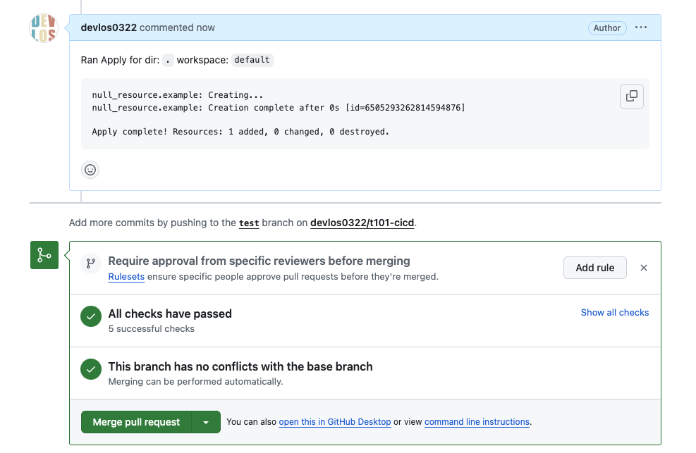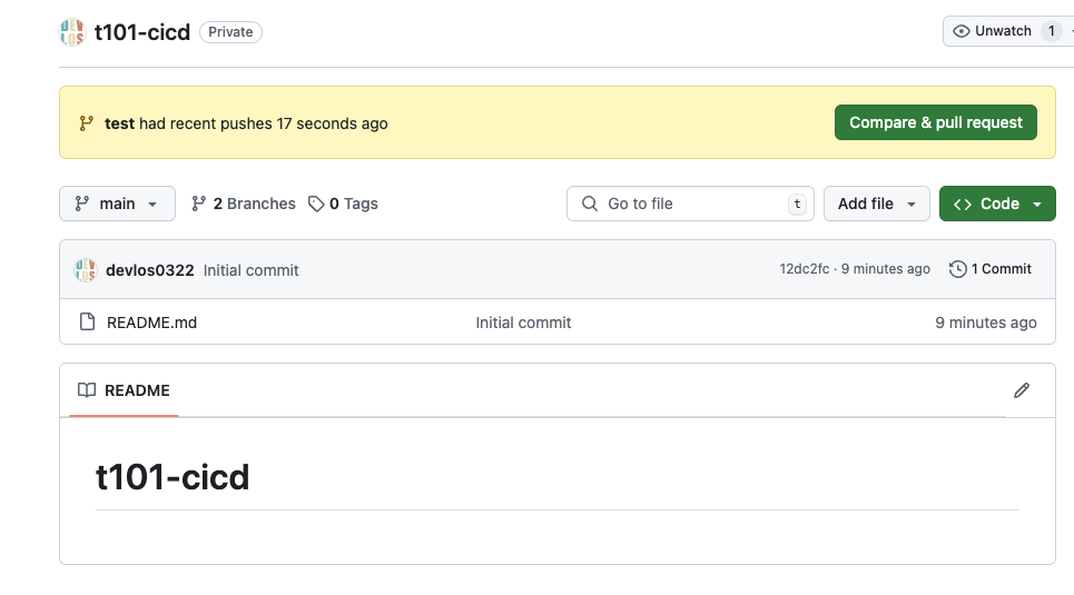 git add main.tf && git commit -m "add main.tf" && git push origin test