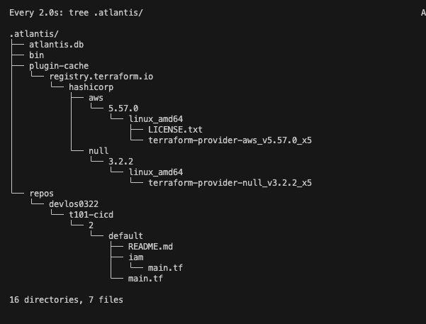 atlantis plan -d iam 를 수행하면 iam프로젝트가 plan이 수행되고 Locking 되는 것을 확인할 수 있습니다.