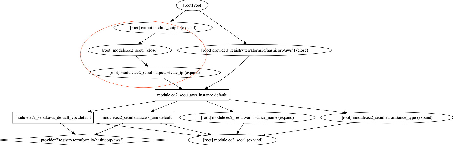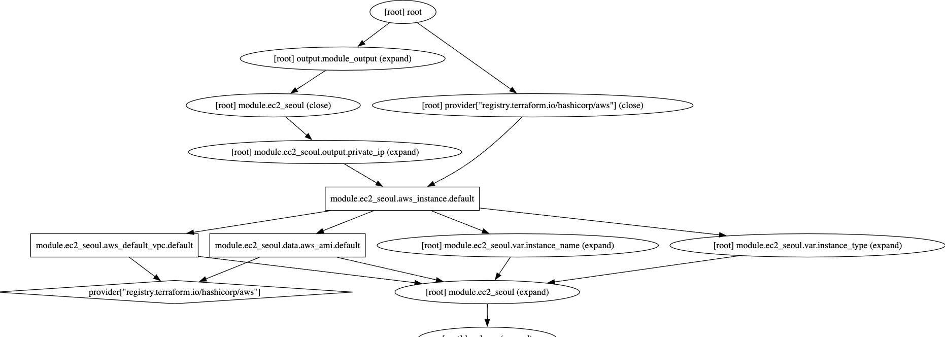 그래프를 확인해보면 다음과 같이 리소스들의 중간에 모듈이 추가된 것을 확인할 수 있습니다.