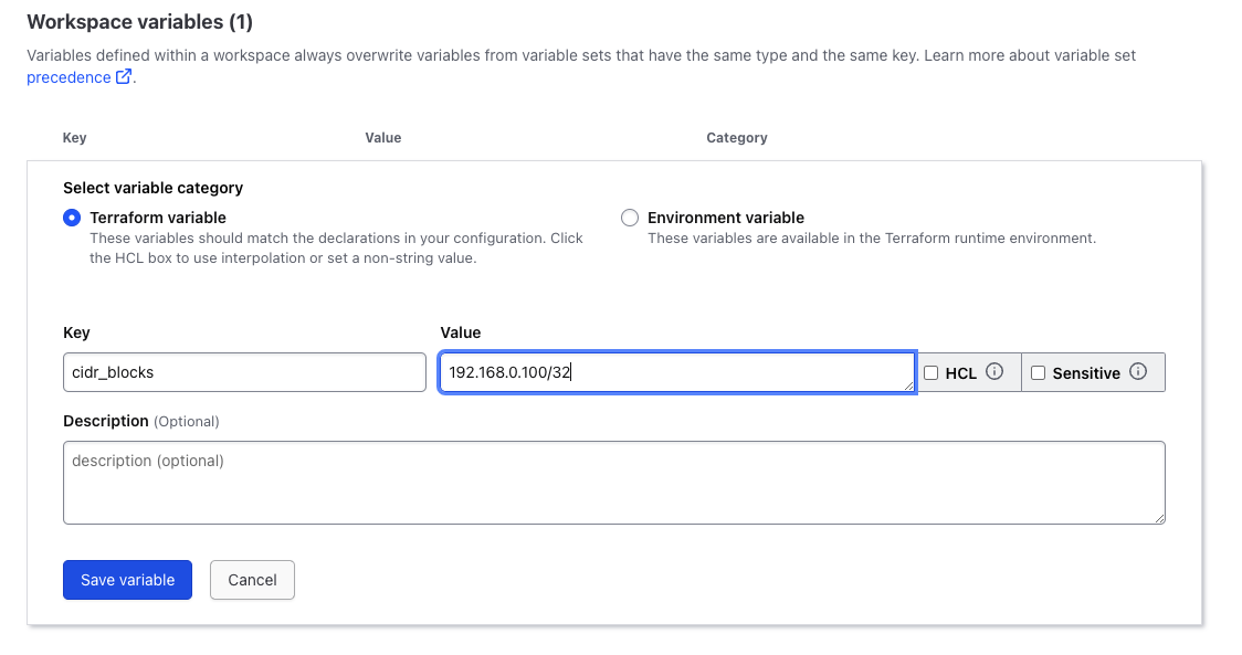 Variable을 변경하여 cidr_blocks를 새로 디자인합니다.
