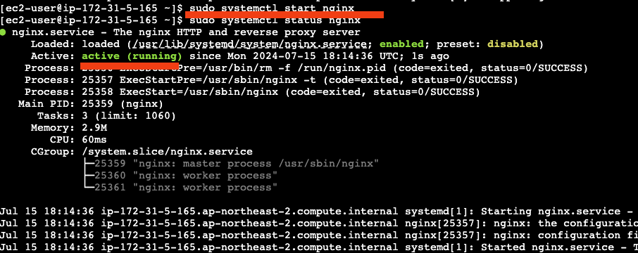 다음과 같이 정상적으로 Nginx가 프로비저닝 된 인스턴스에서 정상 실행되는 것을 확인할 수 있습니다.