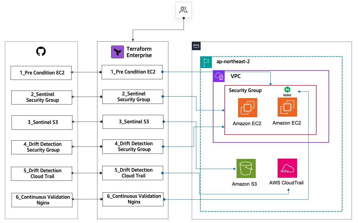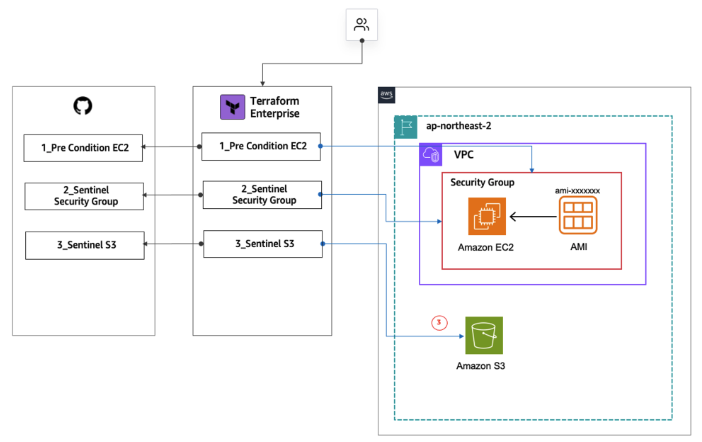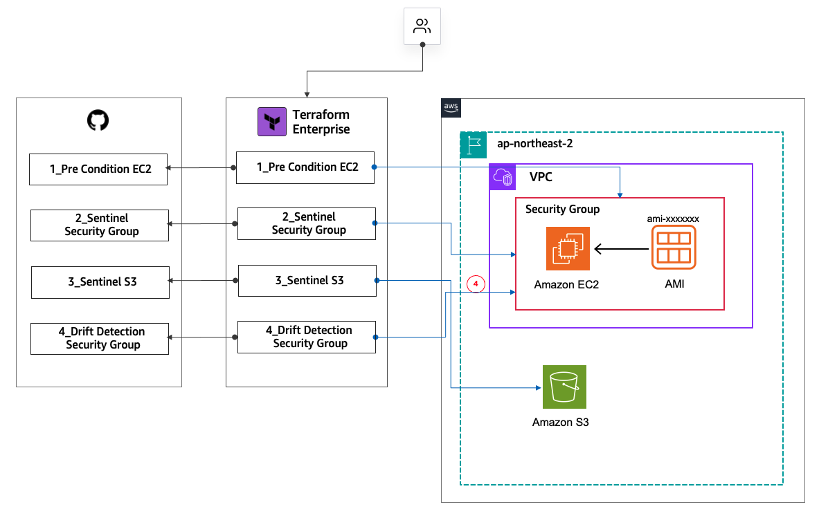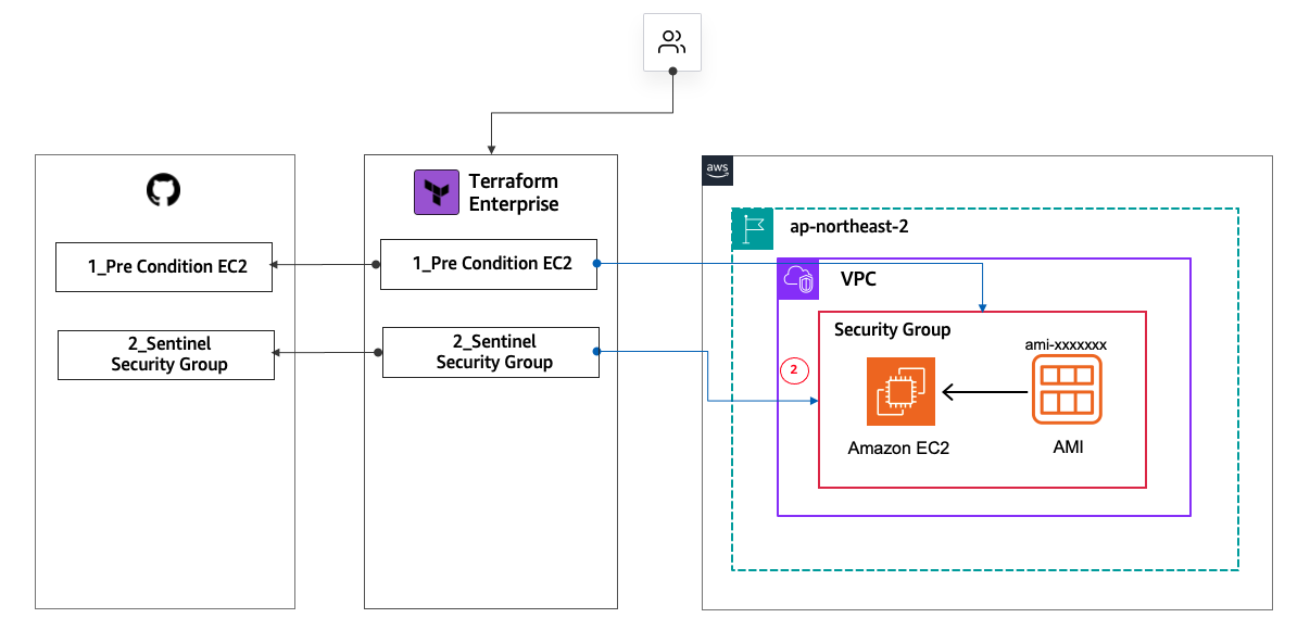 전체적인 구조는 AWS 리소스(VPC내부에서 AMI 기반으로 EC2 배포)가 Terraform Enterprise를 기반으로 프로비저닝 되어 있는 상황입니다.