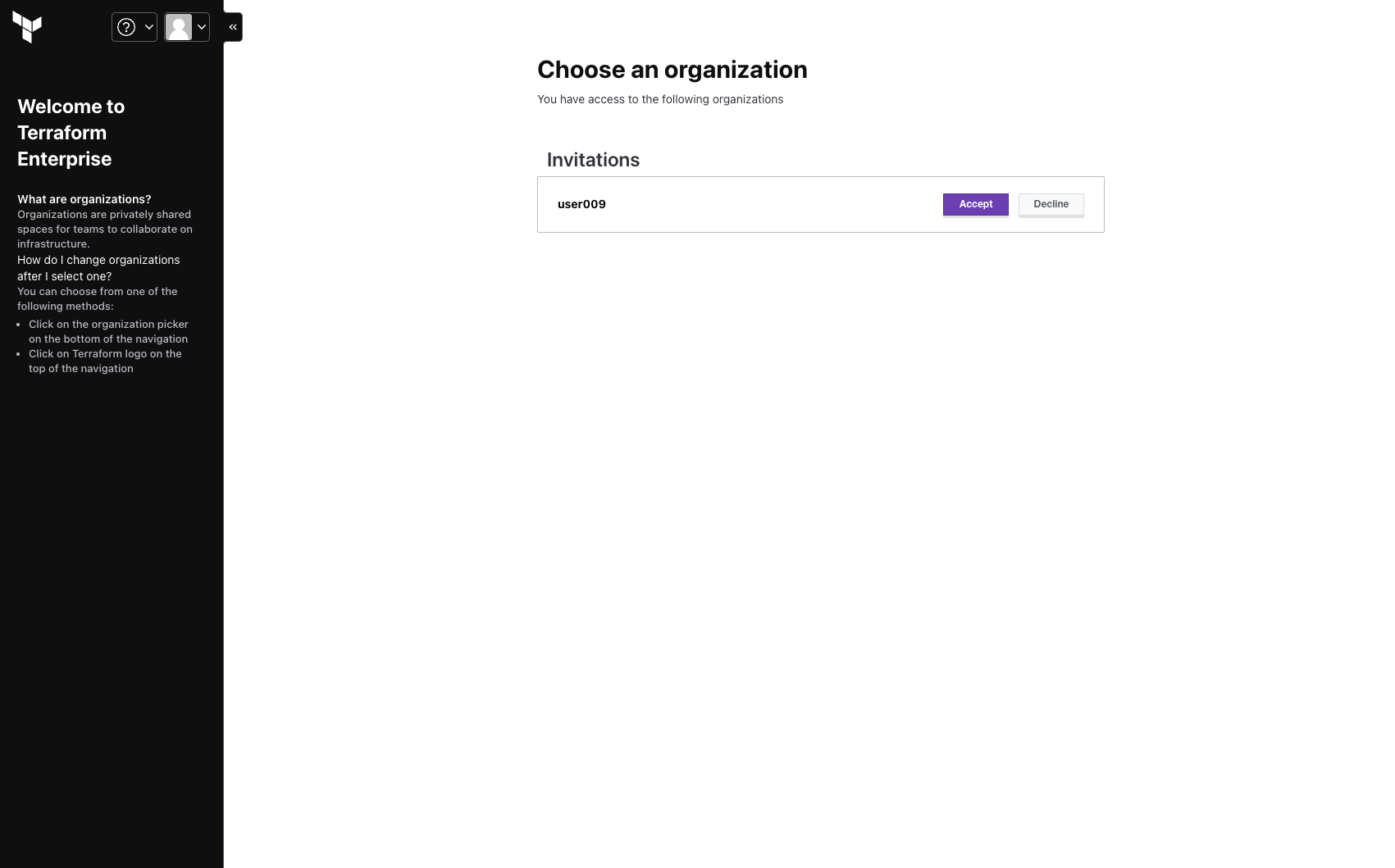 워크숍 스튜디오 로그인 - 테라폼 엔터프라이즈 설치형