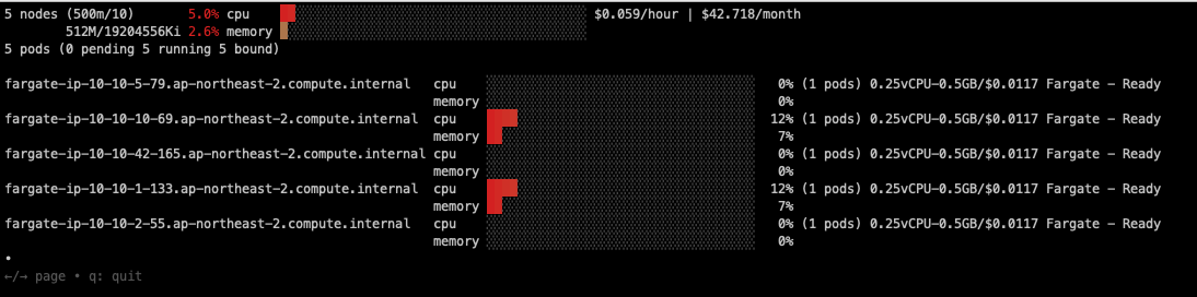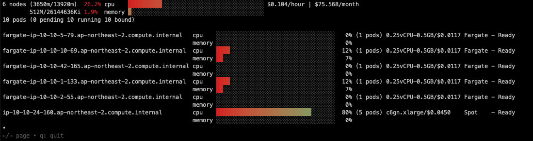 EKS node viewr를 설치하여 클러스터의 상황을 모니터링해보면 Fargate를 통해 인스턴스가 생성된 것을 확인할 수 있습니다.