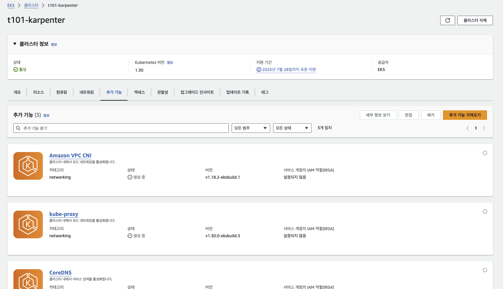 이전 "EKS 워크숍 스터디 - 5주차 Kubernetes Autoscaling 챕터"에서 에서 Karpenter를 이용했던 실습이 있으니, 관심 있으신 분들은 내용을 참고하시면 좋을 것 같습니다.