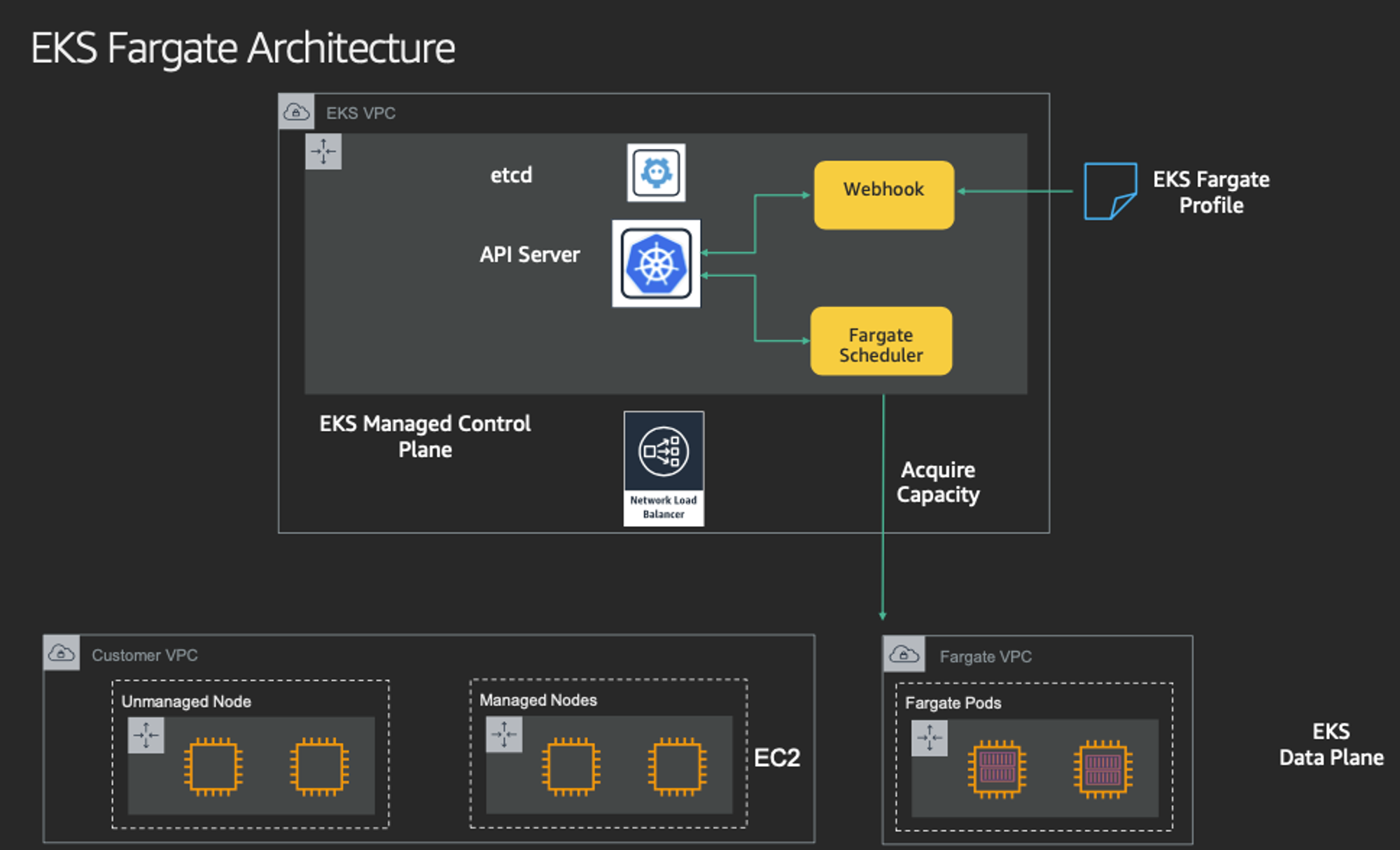EKS(컨트롤 플레인) + Fargate(데이터 플레인)의 완전한 서버리스화(=AWS 관리형)