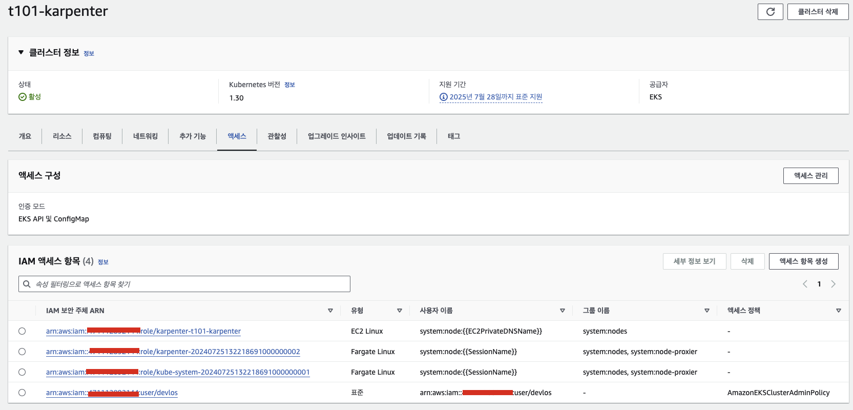 (EKS Access Entries 정책이 자동으로 추가되지 않도록 되어있습니다.)
