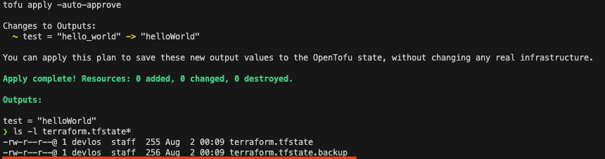 카멜 표기법으로 변경이 되고, tfstate 백업 파일이 생성된 것을 확인할 수 있습니다.