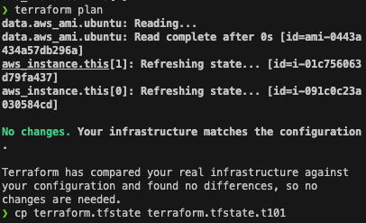 다음으로 import 블록을 통해 variable instance_ids를 통해 apply를 수행하면 다음과 같이 2개의 인스턴스가 잘 import 된 것을 확인할 수 있습니다.