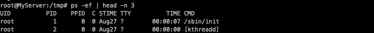 | ps -ef | 모든 프로세스를 표 형식으로 자세히 출력합니다. UID, PID, PPID, 시작 시간 등을 포함하여 프로세스의 자세한 정보를 제공합니다. |
