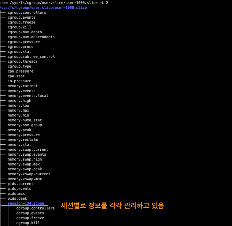 tree /sys/fs/cgroup/user.slice/user-1000.slice -L 1