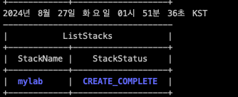 aws cloudformation describe-stacks --stack-name mylab --query 'Stacks[*].Outputs[0].OutputValue' --output text --region ap-northeast-2