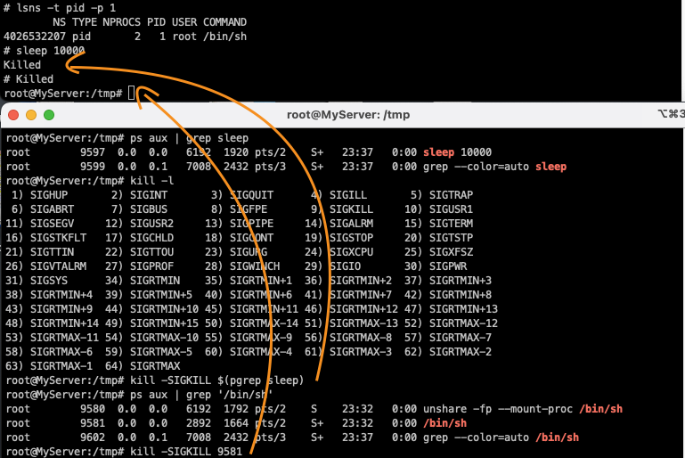 | cat /proc/$(pgrep sleep)/environ ; echo | sleep 프로세스의 환경 변수를 출력합니다. |