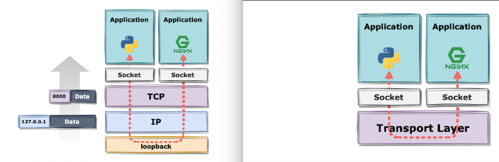 Unix 소켓을 사용하게 되면, loopback 형태의 데이터 통신보다 거쳐야 하는 레이어가 줄기 때문에 아래와 같이 더욱 빠른 속도로 통신할 수 있습니다.