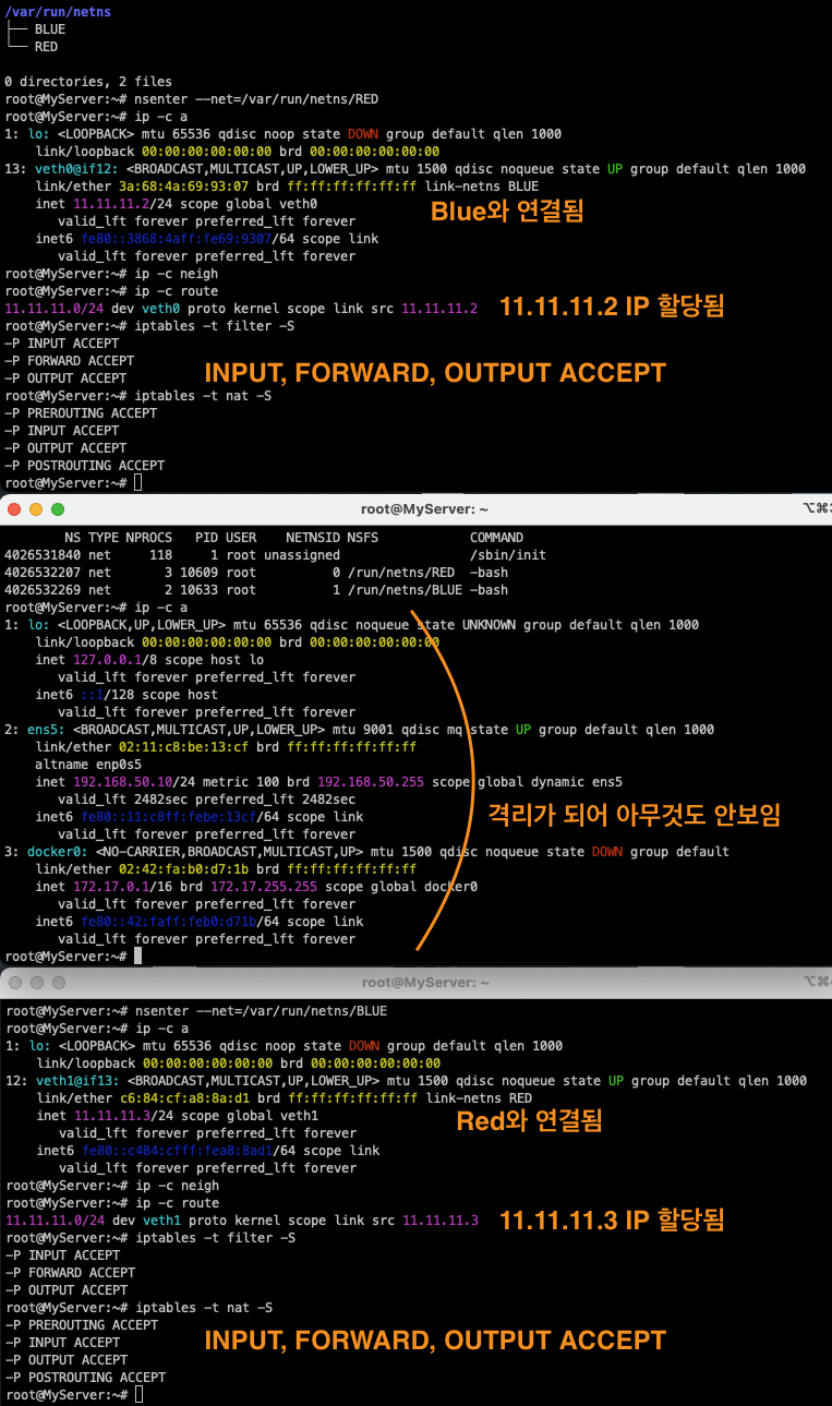 1.1 RED ↔ BLUE 네트워크 네임스페이스 간 통신