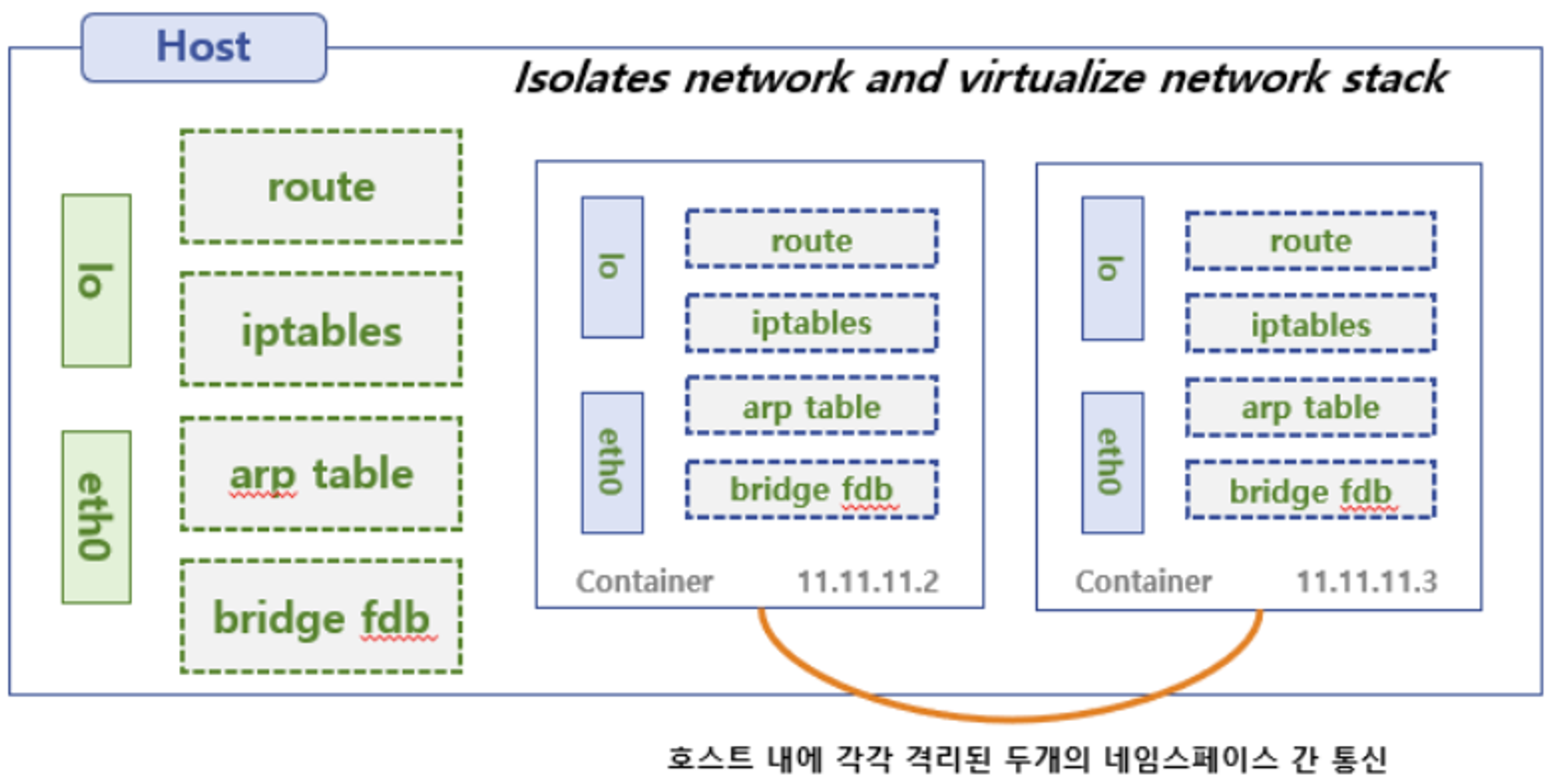 호스트와 격리된 네트워크 네임스페이스를 생성하고, 이를 페어로 구성합니다.