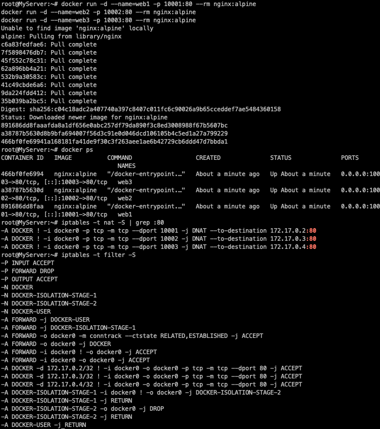 ## veth 에 각각 서로 연결되는 veth peer 가 추가됬음을 확인, docker UP 확인