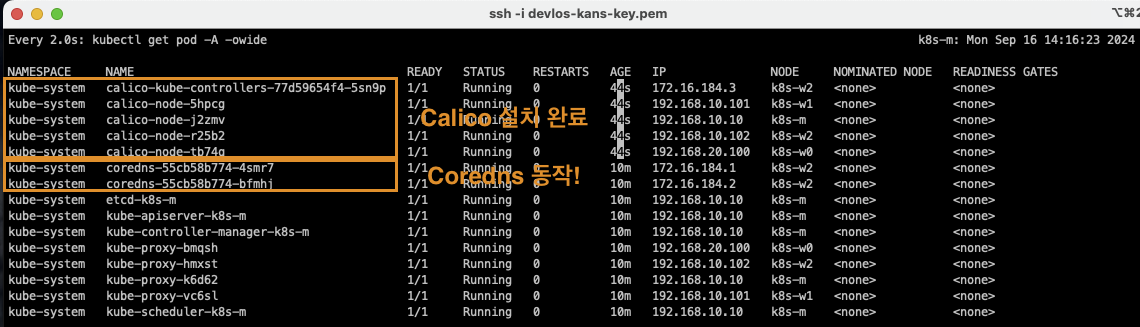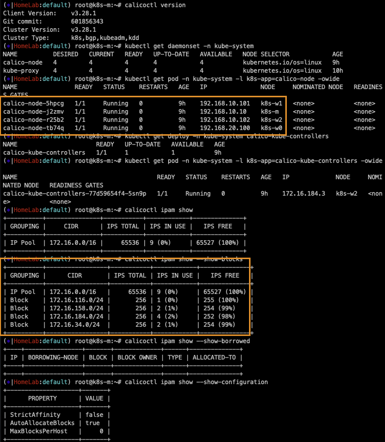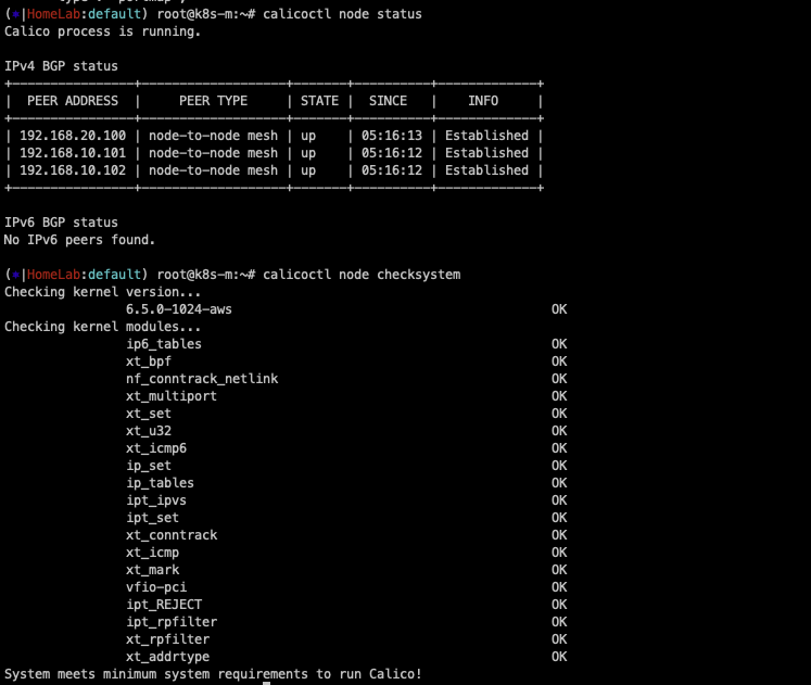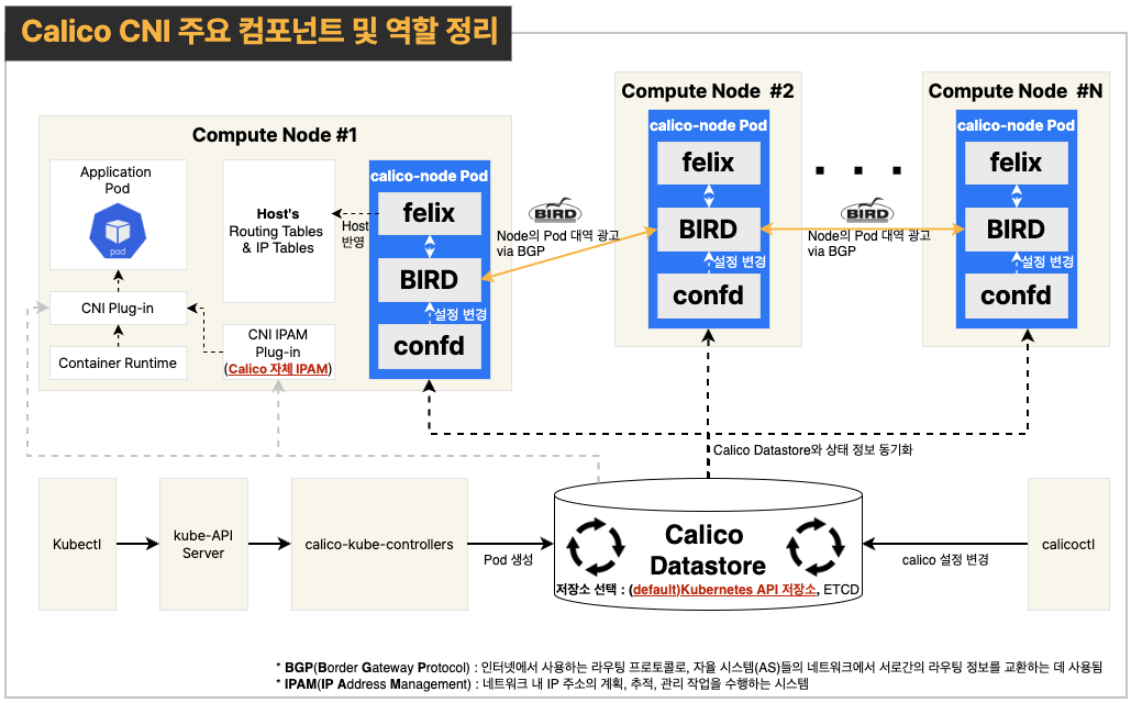 명령어를 통해 위에서 살펴본 Calico 구성요소들을 살펴보았습니다.