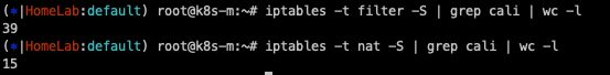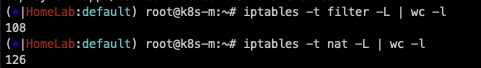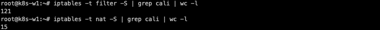 Calico를 설치하기만 했는데도 iptable의 필터와, nat 개수가 108, 126개로 증가했습니다.