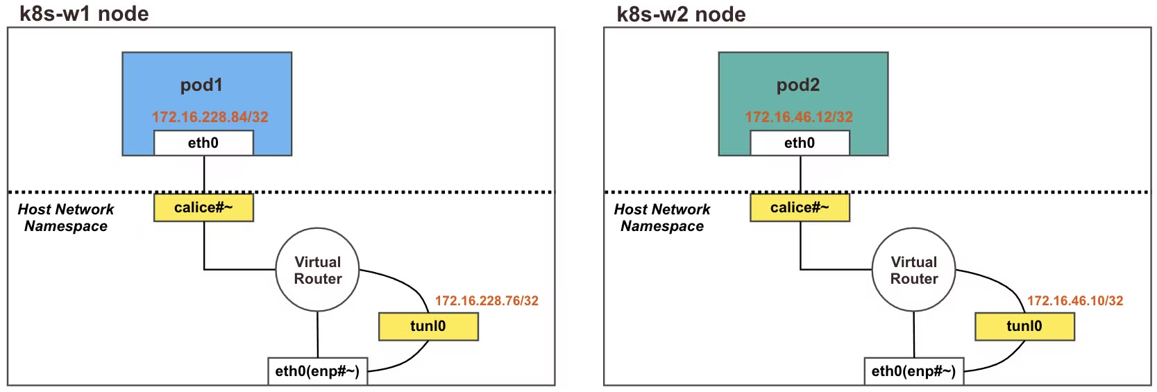 다시 말해 Calico CNI 기반 Pod 간 통신은