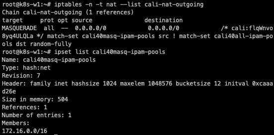 MASQUERADE all -- 0.0.0.0/0 0.0.0.0/0 /* cali:flqWnvo8yq4ULQLa */ match-set cali40masq-ipam-pools src ! match-set cali40all-ipam-pools dst random-fully