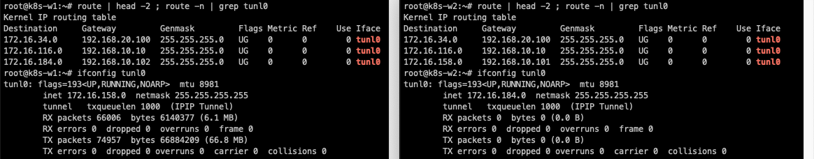 root@k8s-w1:~# route | head -2 ; route -n | grep tunl0