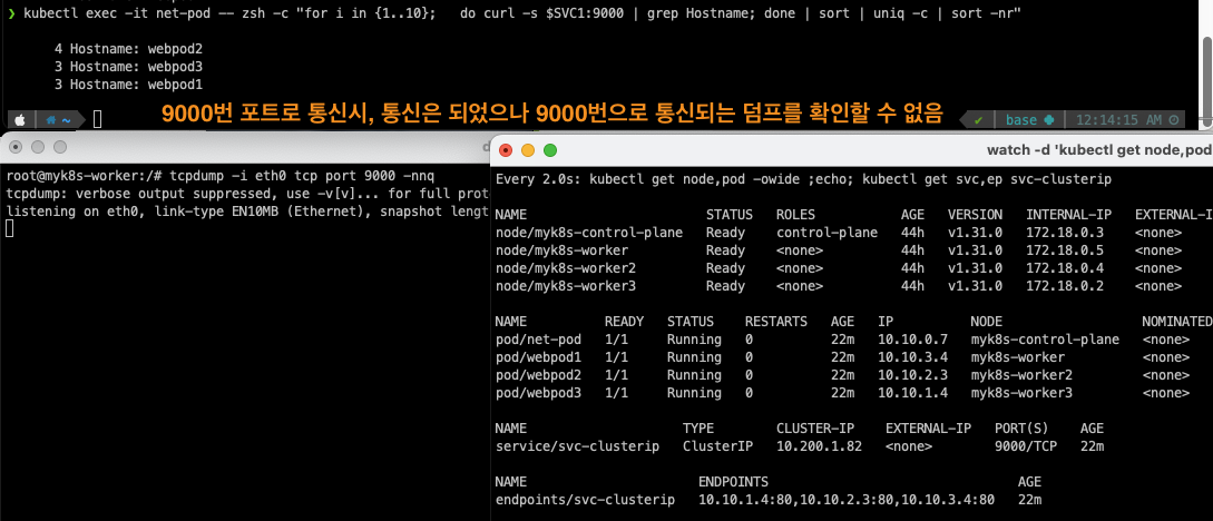 # 목적지 파드가 배치되지 않은 노드는 접속이 어떻게? 왜 그런가?