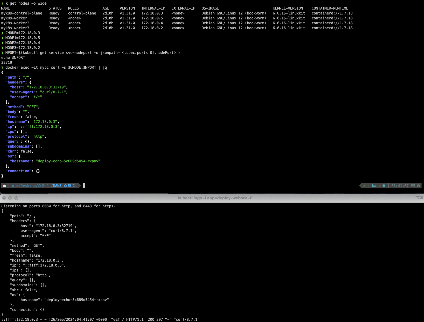 - 노드(실제로는 컨테이너) 네트워크 대역 : 172.18.0.0/16