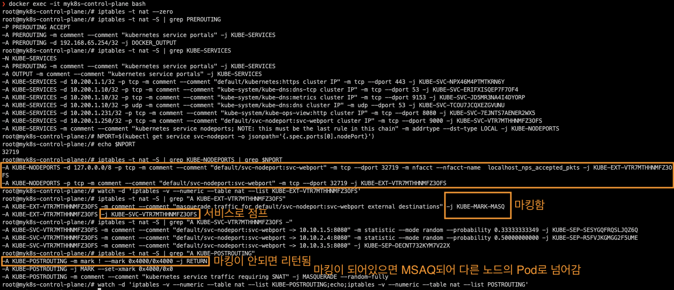 정책 확인을 해보면 다음과 같이 자신의 노드에 생성된 파드만 DNAT 도는 것을 확인할 수 있습니다.