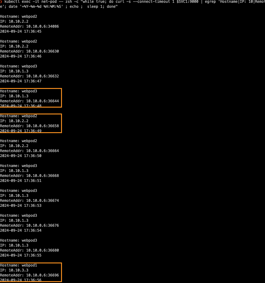 docker exec -it mypc zsh -c "while true; do curl -s --connect-timeout 1 $NODE2:$NPORT | grep hostname; date '+%Y-%m-%d %H:%M:%S' ; echo ; sleep 1; done"