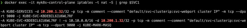-A KUBE-SVL-VTR7MTHHNMFZ3OFS -m comment --comment "default/svc-nodeport:svc-webport -> 10.10.2.7:8080" -j KUBE-SEP-FBJG45W6XHLV2NA6