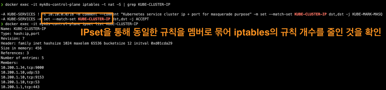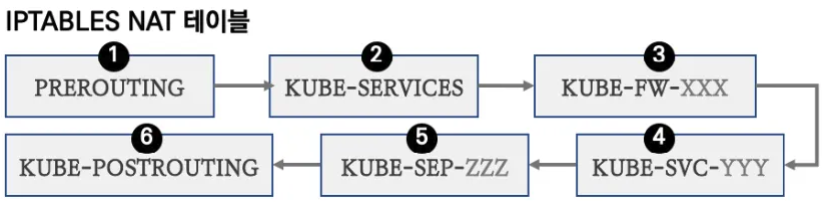 ## Service IP(VIP) 처리를 ipvs 에서 담당 -> 이를 통해 iptables 에 체인/정책이 상당 수준 줄어듬