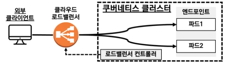 두 번째 방식은 쿠버네티스의 로드밸런서 컨트롤러를 이용하여 클라우드 로드밸런서를 Pod와 다이렉트로 연결하는 방법입니다.