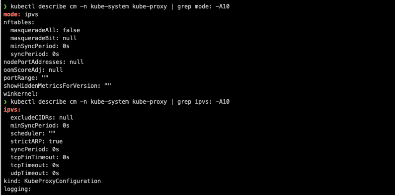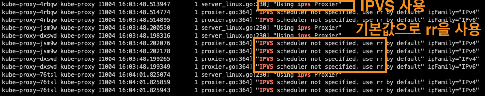 다음으로 IPVS모드가 적용된 것을 확인합니다.