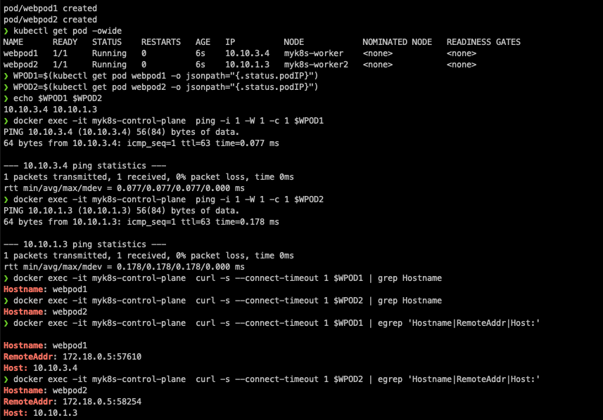 for i in worker worker2 worker3; do echo ">> node myk8s-$i <<"; docker exec -it myk8s-$i sh -c 'apt update && apt install tree psmisc lsof wget bsdmainutils bridge-utils net-tools dnsutils ipset ipvsadm nfacct tcpdump ngrep iputils-ping arping -y'; echo; done
