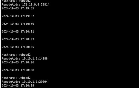 app: webpod # 셀렉터 아래 app:webpod 레이블이 설정되어 있는 파드들은 해당 서비스에 연동됨