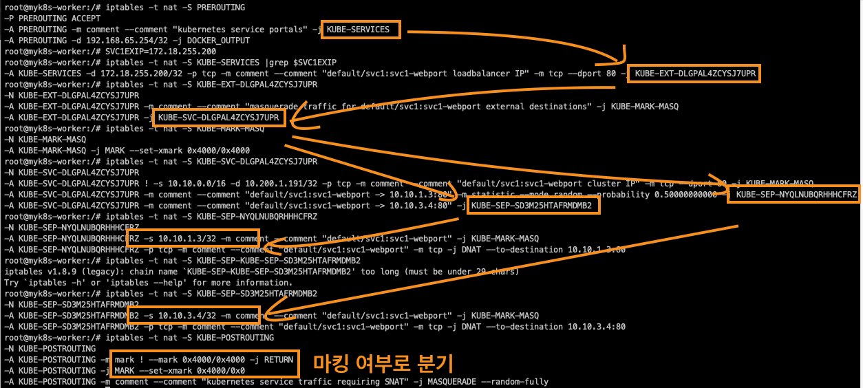 # iptables 정보 확인 : 정책 갯수를 iptables proxy 모드와 비교해보자