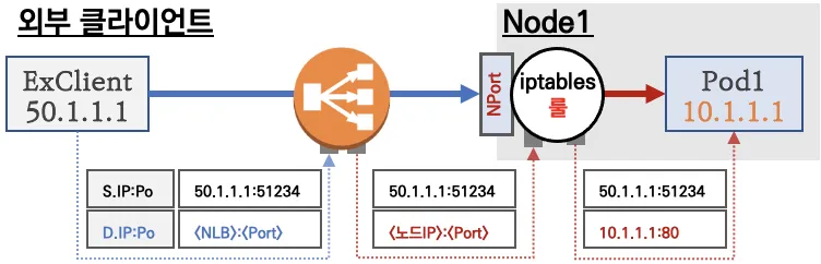 (해당 그림에서는 소프트웨어 로드밸런서를 사용, 예: MetalLB)