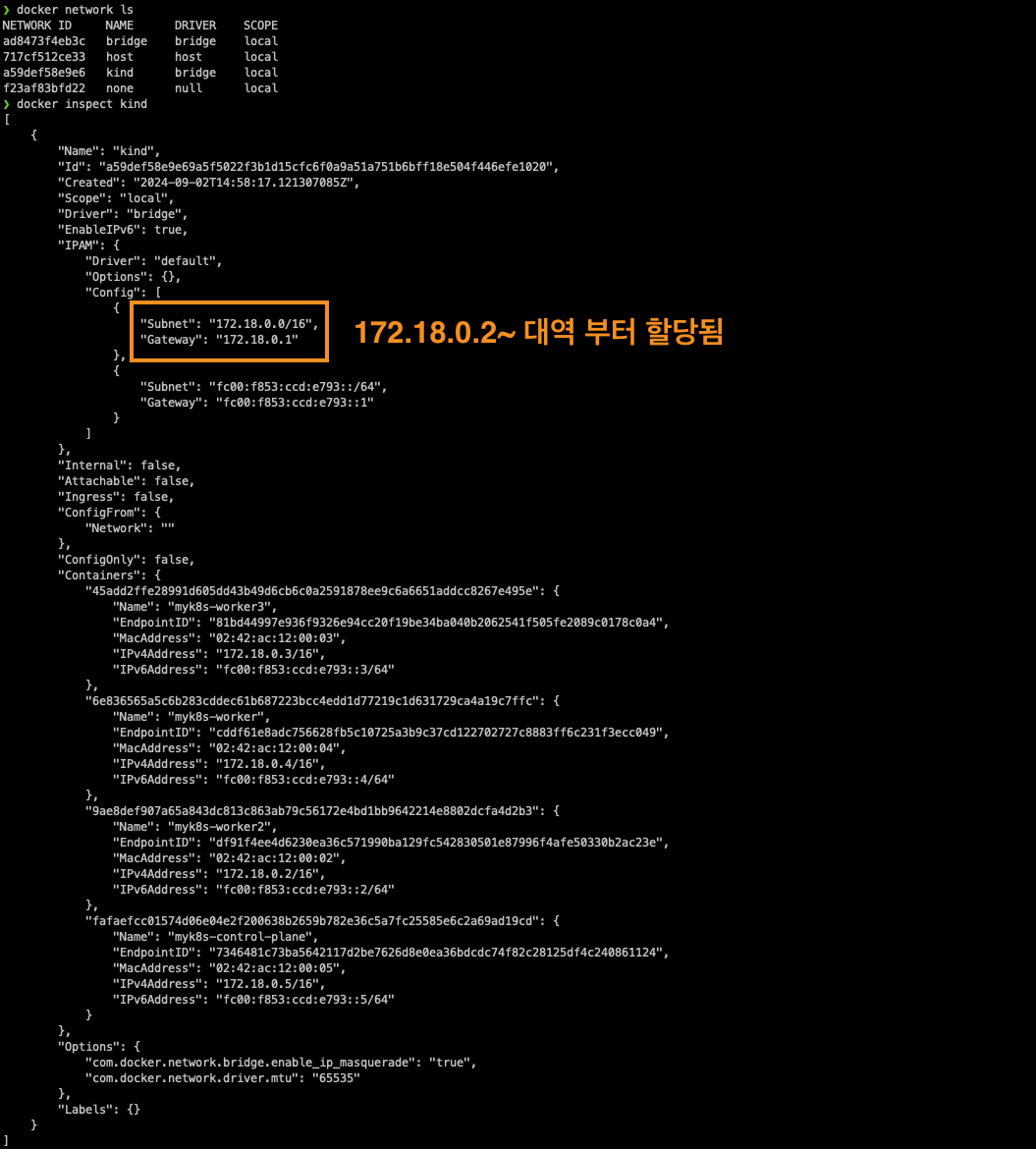 # mypc 컨테이너 기동 : kind 도커 브리지를 사용하고, 컨테이너 IP를 직접 지정 혹은 IP 지정 없이 배포